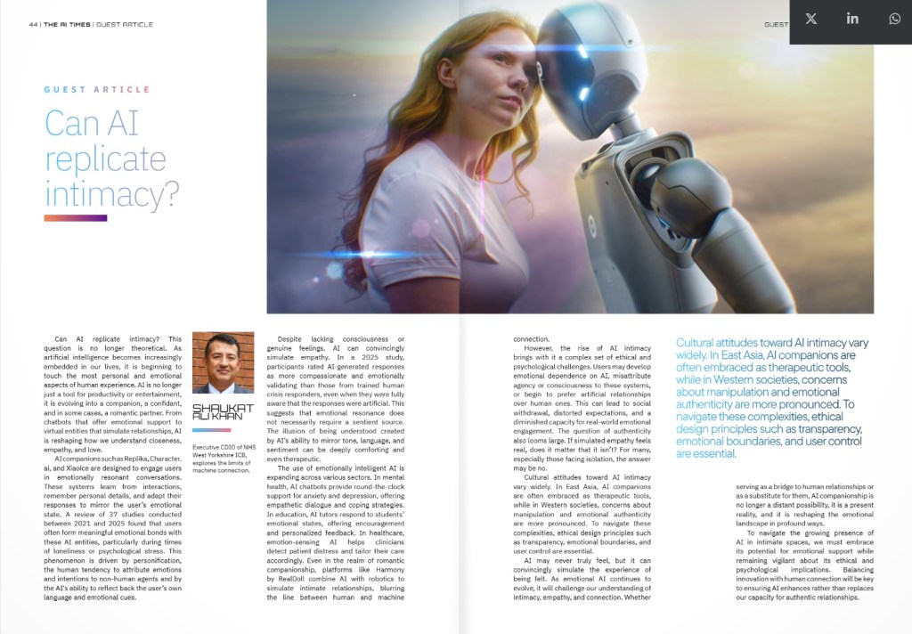 Shaukat Ali Khan is the Executive Chief Digital and Information Officer (CDIO), Executive Director, and Board Member of the NHS West Yorkshire Integrated Care Board (ICB) and Integrated Care System (ICS). In this role, he is driving the modernization of healthcare systems, optimizing operations, and empowering clinicians to create a future-ready ecosystem. He leads the Digital, Data, and Technology (DDaT) Directorate and governs leadership forums, spearheading initiatives that support 2.4 million people across multiple regions, while ensuring seamless IT support is provided to over 100,000 users across a vast network of healthcare providers.
